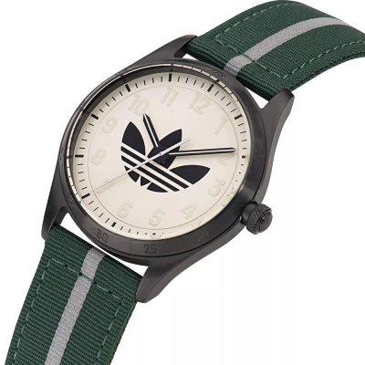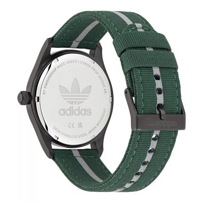 Zegarek marki Adidas ma stal chirurgiczna kopertę 42 mm średnicy i jest wyposażony w pasek z materiału Z materiału. Wewnątrz koperty jest mechanizm Timex i zegarek ma także szkiełko Mineralny.