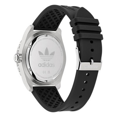 Zegarek marki Adidas ma stal chirurgiczna kopertę 44 mm średnicy i jest wyposażony w pasek z materiału guma. Wewnątrz koperty jest mechanizm Timex i zegarek ma także szkiełko Mineralny.
