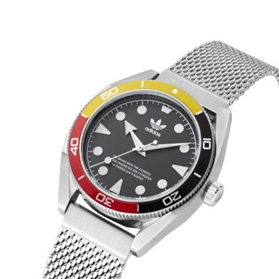 Zegarek marki Adidas ma stal chirurgiczna kopertę 43 mm średnicy i jest wyposażony w pasek z materiału metal. Wewnątrz koperty jest mechanizm Timex i zegarek ma także szkiełko Mineralny.