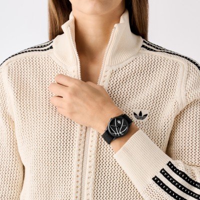 Zegarek marki Adidas ma Żywica kopertę 39 mm średnicy i jest wyposażony w pasek z materiału Z materiału. Wewnątrz koperty jest mechanizm Timex i zegarek ma także szkiełko Akryl.