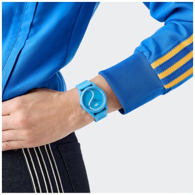 Zegarek marki Adidas ma Żywica kopertę 38 mm średnicy i jest wyposażony w pasek z materiału guma. Wewnątrz koperty jest mechanizm Timex i zegarek ma także szkiełko Akryl.