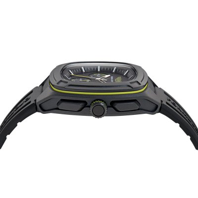 Zegarek marki Aston Martin ma Żywica kopertę 44 mm średnicy i jest wyposażony w pasek z materiału guma.