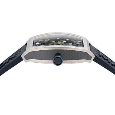 Zegarek marki Aston Martin ma Tytan kopertę 41 mm średnicy i jest wyposażony w pasek z materiału guma. Wewnątrz koperty jest mechanizm Timex i zegarek ma także szkiełko Mineralny.