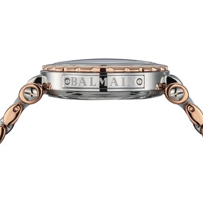 Zegarek marki Balmain ma stal chirurgiczna kopertę 38 mm średnicy i jest wyposażony w pasek z materiału stal chirurgiczna. Wewnątrz koperty jest mechanizm ETA i zegarek ma także szkiełko Sapphire.