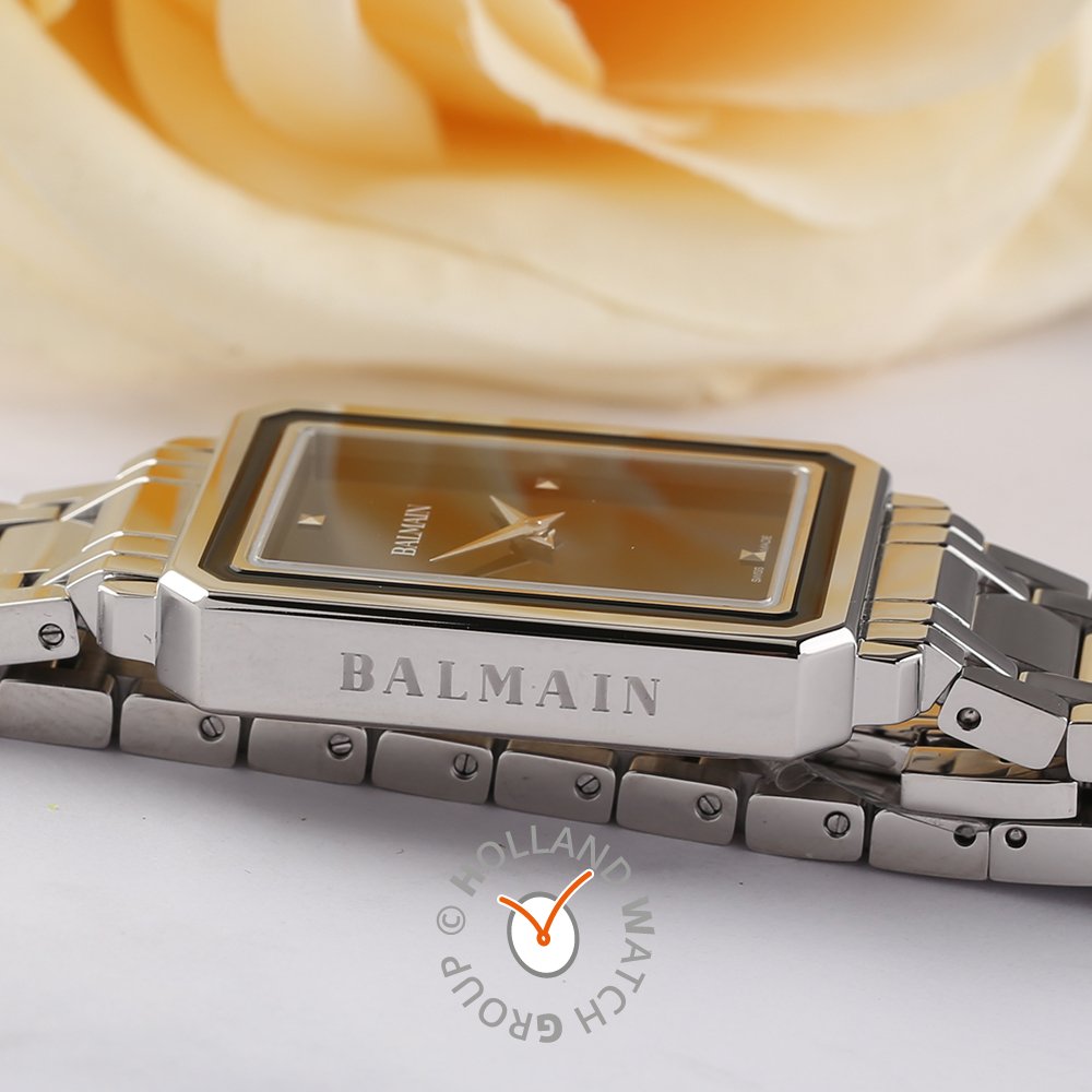 Zegarek marki Balmain ma stal chirurgiczna kopertę 25 mm średnicy i jest wyposażony w pasek z materiału stal chirurgiczna. Wewnątrz koperty jest mechanizm ETA i zegarek ma także szkiełko Pojedyncze szafirowe szkiełko anty-refleksyjne.