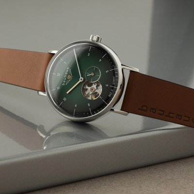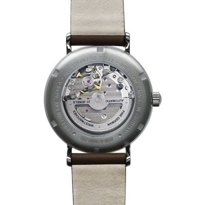 Zegarek marki Bauhaus ma stal chirurgiczna kopertę 41 mm średnicy i jest wyposażony w pasek z materiału skóra. Wewnątrz koperty jest mechanizm Miyota i zegarek ma także szkiełko K1 Mineral.