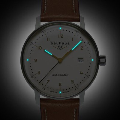 Zegarek marki Bauhaus ma stal chirurgiczna kopertę 41 mm średnicy i jest wyposażony w pasek z materiału skóra. Wewnątrz koperty jest mechanizm Miyota i zegarek ma także szkiełko K1 Mineral.