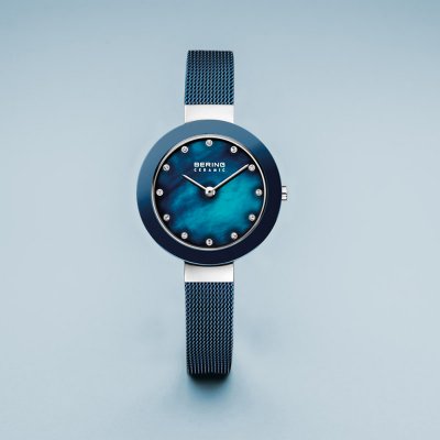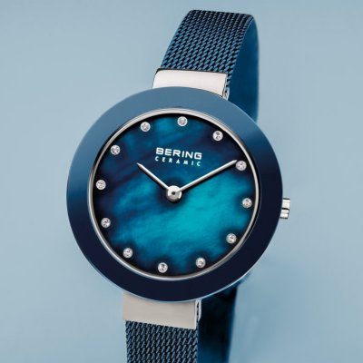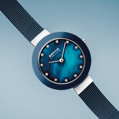 Blue ladies watch with ceramic ring and ocean blue MOP dial