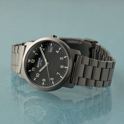 Zegarek marki Boccia ma Tytan kopertę 37 mm średnicy i jest wyposażony w pasek z materiału Tytan. Wewnątrz koperty jest mechanizm Miyota i zegarek ma także szkiełko Mineralny.
