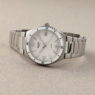 Zegarek marki Boccia ma Tytan kopertę 36 mm średnicy i jest wyposażony w pasek z materiału Tytan. Wewnątrz koperty jest mechanizm Miyota i zegarek ma także szkiełko Sapphire.