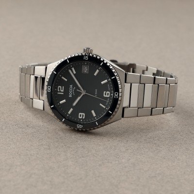 Zegarek marki Boccia ma Tytan kopertę 36 mm średnicy i jest wyposażony w pasek z materiału Tytan. Wewnątrz koperty jest mechanizm Miyota i zegarek ma także szkiełko Sapphire.