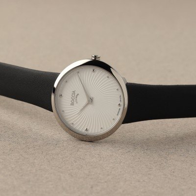Zegarek marki Boccia ma Tytan kopertę 32 mm średnicy i jest wyposażony w pasek z materiału skóra. Wewnątrz koperty jest mechanizm Miyota i zegarek ma także szkiełko Sapphire.