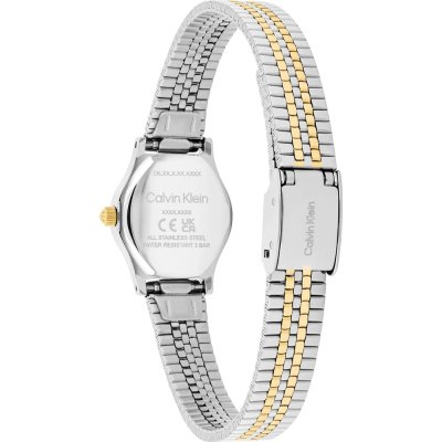 Zegarek marki Calvin Klein ma stal chirurgiczna kopertę 18 mm średnicy i jest wyposażony w pasek z materiału stal chirurgiczna. Wewnątrz koperty jest mechanizm Seiko Instruments Inc. i zegarek ma także szkiełko Mineralny.