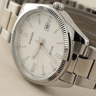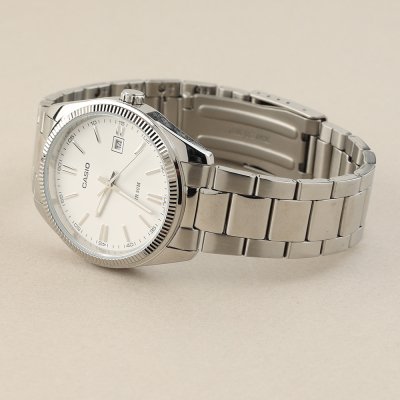 Zegarek marki Casio ma Stop metali kopertę 38.5 mm średnicy i jest wyposażony w pasek z materiału stal chirurgiczna. Wewnątrz koperty jest mechanizm Casio i zegarek ma także szkiełko Mineralny.