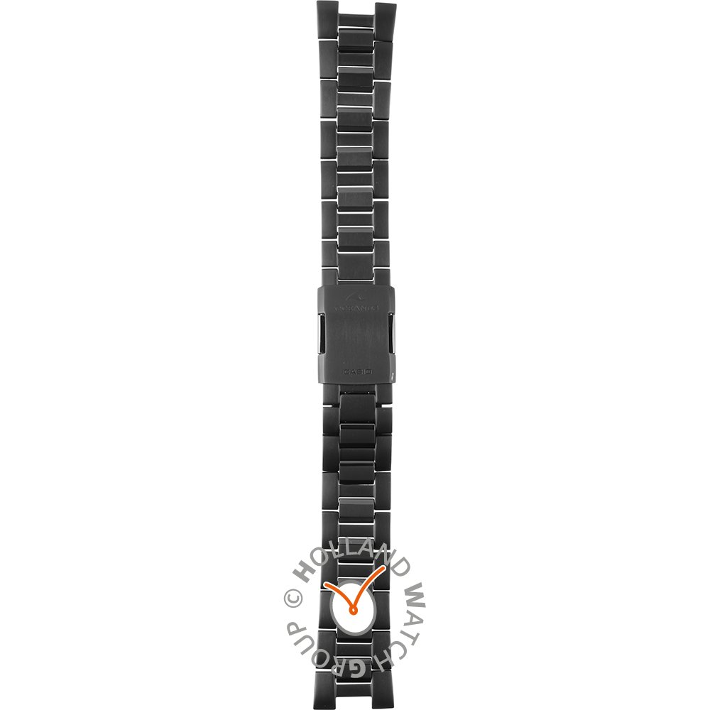 Pasek do zegarka Casio jest wykonany z materiału tytan i jest zamocowany do zegarka za pomocą… kołki sprężyste. Ten pasek ma szerokość 20 mm i zamyka się za pomocą zapięcie zatrzaskowe z przyciskami. Ten pasek nie ma prostego mocowania, co oznacza, że pasuje wyłącznie do zegarków z poniższej listy.