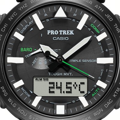 Zegarek marki Casio ma Plastik / Żywica syntetyczna kopertę 51.5 mm średnicy i jest wyposażony w pasek z materiału Żywica. Wewnątrz koperty jest mechanizm Casio i zegarek ma także szkiełko Mineralny.
