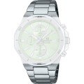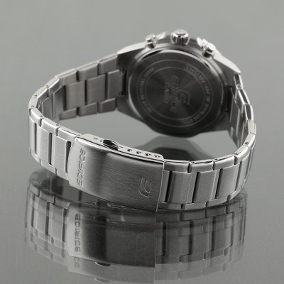 Zegarek marki Casio Edifice ma stal chirurgiczna kopertę 44 mm średnicy i jest wyposażony w pasek z materiału metal. Wewnątrz koperty jest mechanizm Casio i zegarek ma także szkiełko Mineralny.