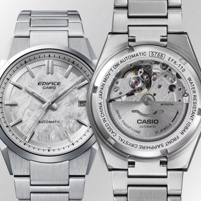 Zegarek marki Casio Edifice ma stal chirurgiczna kopertę 38 mm średnicy i jest wyposażony w pasek z materiału stal chirurgiczna. Wewnątrz koperty jest mechanizm Casio i zegarek ma także szkiełko Sapphire.