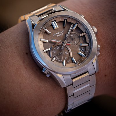 Zegarek marki Casio Edifice ma stal chirurgiczna kopertę 39.5 mm średnicy i jest wyposażony w pasek z materiału stal chirurgiczna. Wewnątrz koperty jest mechanizm Casio i zegarek ma także szkiełko Pojedyncze szafirowe szkiełko anty-refleksyjne.