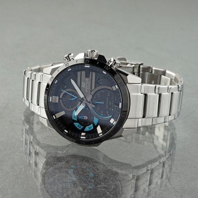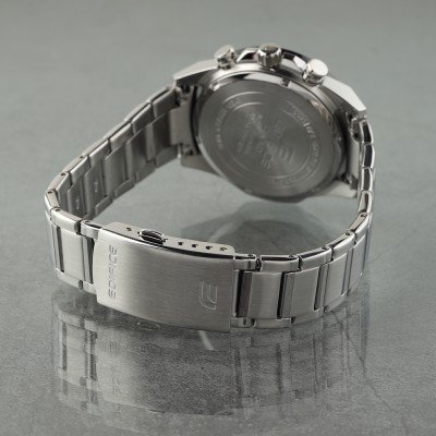 Zegarek marki Casio Edifice ma stal chirurgiczna kopertę 45.5 mm średnicy i jest wyposażony w pasek z materiału metal. Wewnątrz koperty jest mechanizm Casio i zegarek ma także szkiełko Sapphire.