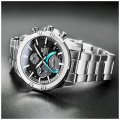 Zegarek marki Casio Edifice ma stal chirurgiczna kopertę 45.6 mm średnicy i jest wyposażony w pasek z materiału metal. Wewnątrz koperty jest mechanizm Casio i zegarek ma także szkiełko Mineralny.
