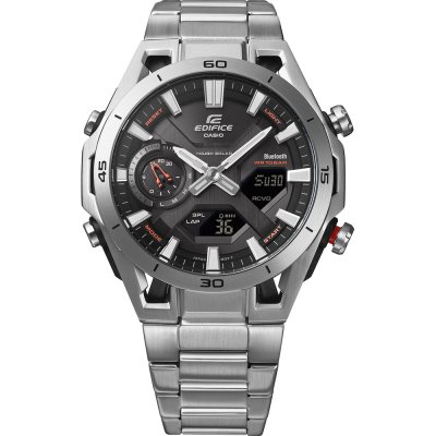 Zegarek marki Casio Edifice ma Stal nierdzewna i węgiel kopertę 45.8 mm średnicy i jest wyposażony w pasek z materiału stal chirurgiczna. Wewnątrz koperty jest mechanizm Casio i zegarek ma także szkiełko Mineralny.
