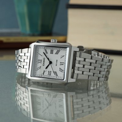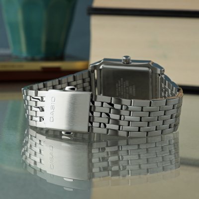 Zegarek marki Casio ma stal chirurgiczna kopertę 32 mm średnicy i jest wyposażony w pasek z materiału stal chirurgiczna. Wewnątrz koperty jest mechanizm Casio i zegarek ma także szkiełko Mineralny.