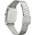 Zegarek marki Casio ma Żywica kopertę 29.8 mm średnicy i jest wyposażony w pasek z materiału stal chirurgiczna. Wewnątrz koperty jest mechanizm Casio i zegarek ma także szkiełko Akryl.