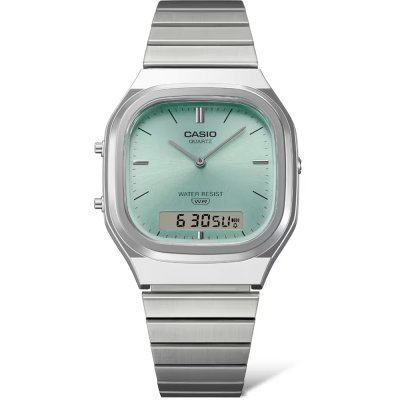 Zegarek marki Casio ma Żywica kopertę 36 mm średnicy i jest wyposażony w pasek z materiału stal chirurgiczna. Wewnątrz koperty jest mechanizm Casio i zegarek ma także szkiełko Akryl.