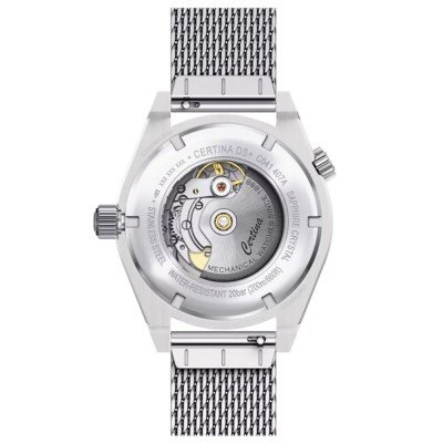 Zegarek marki Certina ma stal chirurgiczna kopertę 42 mm średnicy i jest wyposażony w pasek z materiału stal chirurgiczna. Wewnątrz koperty jest mechanizm ETA i zegarek ma także szkiełko Pojedyncze szafirowe szkiełko anty-refleksyjne.