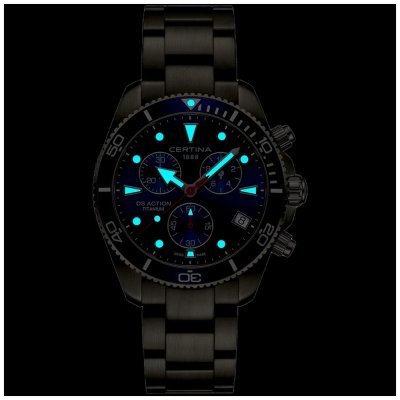Zegarek marki Certina ma Tytan kopertę 42 mm średnicy i jest wyposażony w pasek z materiału Tytan. Wewnątrz koperty jest mechanizm ETA i zegarek ma także szkiełko Pojedyncze szafirowe szkiełko anty-refleksyjne.