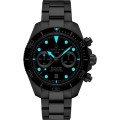 DS Action Diver Chrono łączy w sobie specyfikacje nurkowe DS Action Diver z funkcją chronografu. Podobnie jak każdy inny zegarek Certina z DS w nazwie, jest to wyjątkowo wodoodporny zegarek, w tym przypadku do 300 metrów (zgodny ze specyfikacją zegarków nurkowych ISO 6425). Ten najnowszy dodatek do serii DS Action składa się z trzech zegarków; modelu z niebieską i czarną tarczą z bransoletą ze stali nierdzewnej oraz tarczy w kolorze piasku z czarnymi i złotymi akcentami i pasującym paskiem wykonanym z tworzywa sztucznego pochodzącego z recyklingu (materiał #tide ocean). Konstrukcja zegarka jest częściowo oparta na 43 mm DS Action Diver i niektórych elementach chronografu DS-2 z solidnymi osłonami koronki i 60-minutowym jednokierunkowym bezelem z ceramiczną wkładką. Solidna koperta DS charakteryzuje się sportowym, szczotkowanym wykończeniem z polerowanymi akcentami na koronce, przyciskach i oczywiście deklu z logo żółwia. Podczas gdy Certina DS Action Diver Chrono nawiązuje do zegarków narzędziowych marki z lat 50-tych, jego retro wibracje są ograniczone do minimum dzięki symetrycznym poziomo ustawionym licznikom i małej tarczy sekundowej na godzinie 9. DS Action Diver Chrono jest napędzany automatycznym mechanizmem chronografu ETA A05.231, który jest wyposażony w antymagnetyczną silikonową sprężynę włosową i ma rezerwę mocy wynoszącą 68 godzin, dzięki czemu jest to nie tylko funkcjonalny chronograf do nurkowania, ale także stylowy towarzysz.