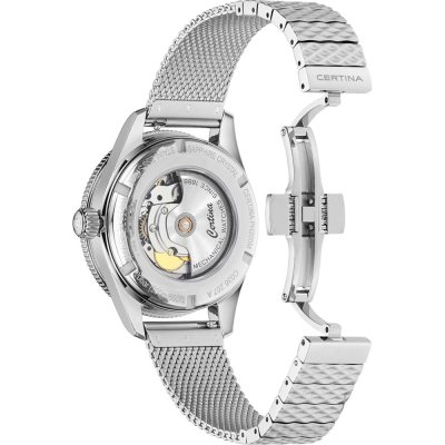 Zegarek marki Certina ma stal chirurgiczna kopertę 39 mm średnicy i jest wyposażony w pasek z materiału stal chirurgiczna. Wewnątrz koperty jest mechanizm ETA i zegarek ma także szkiełko Sapphire.
