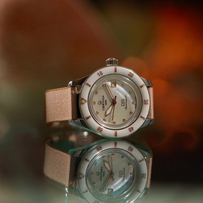 Zegarki DS PH są inspirowane legendarnymi zegarkami do nurkowania Certina z lat 60-tych. Zegarek wyposażony jest w mechanizm Powermatic 80 z niezwykłą 80-godzinną rezerwą chodu. Ta 39-milimetrowa wersja spodoba się sportowym kobietom dzięki eleganckiemu i miękkiemu paskowi bezpieczeństwa oraz tarczy z masy perłowej z 11 diamentowymi indeksami otoczonymi białą ceramiczną ramką. Zaprojektowany dla kobiet poszukujących zegarka, który jest zarówno elegancki, jak i wytrzymały, zegarek ten wyróżnia się starannym designem i sprawdzoną technologią.