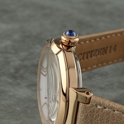 Zegarek marki Citizen ma stal chirurgiczna kopertę 29.5 mm średnicy i jest wyposażony w pasek z materiału Skóra ekologiczna na bazie jabłek. Wewnątrz koperty jest mechanizm Citizen i zegarek ma także szkiełko Sapphire.
