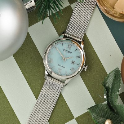Zegarek marki Citizen ma stal chirurgiczna kopertę 31.5 mm średnicy i jest wyposażony w pasek z materiału stal chirurgiczna. Wewnątrz koperty jest mechanizm Citizen i zegarek ma także szkiełko Mineralny.