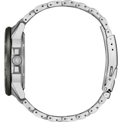 Zegarek marki Citizen ma stal chirurgiczna kopertę 44.5 mm średnicy i jest wyposażony w pasek z materiału stal chirurgiczna. Wewnątrz koperty jest mechanizm Citizen i zegarek ma także szkiełko Sapphire.