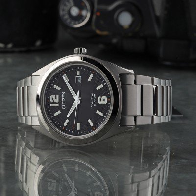 Zegarek marki Citizen ma Super Titanium kopertę 42 mm średnicy i jest wyposażony w pasek z materiału Super Titanium. Wewnątrz koperty jest mechanizm Citizen i zegarek ma także szkiełko Mineralny.