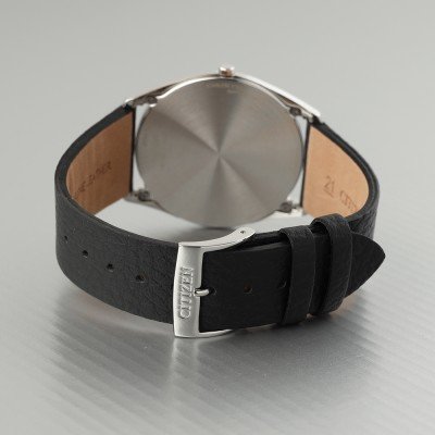 Zegarek marki Citizen ma stal chirurgiczna kopertę 38.4 mm średnicy i jest wyposażony w pasek z materiału skóra. Wewnątrz koperty jest mechanizm Citizen i zegarek ma także szkiełko Sapphire.
