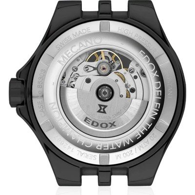 Zegarek marki Edox ma stal chirurgiczna kopertę 43 mm średnicy i jest wyposażony w pasek z materiału guma. Wewnątrz koperty jest mechanizm Sellita i zegarek ma także szkiełko Sapphire.