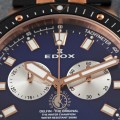 Zegarek marki Edox ma stal chirurgiczna kopertę 43 mm średnicy i jest wyposażony w pasek z materiału guma. Wewnątrz koperty jest mechanizm Ronda i zegarek ma także szkiełko Sapphire.