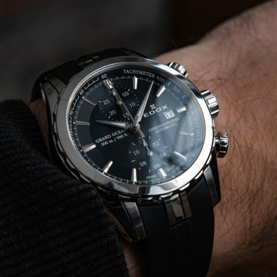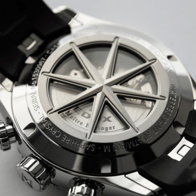 Seria zegarków Grand Ocean jest wierna swojemu żeglarskiemu rodowodowi z imponującą wodoodpornością 30 ATM i automatycznym mechanizmem chronografu oraz wewnętrznym bezelem ze skalą tachymetru. Kolejną uderzającą cechą jest tył koperty z różą kompasową z oknami na mechanizm. Wygodny gumowy pasek z zapięciem motylkowym dobrze przylega do "potrójnej" rogowej koperty. Jest to charakterystyczna cecha inspirowana inżynierią morską, zapewniająca bezpieczne i ergonomiczne dopasowanie, a jednocześnie dodająca charakterystycznego wyglądu.