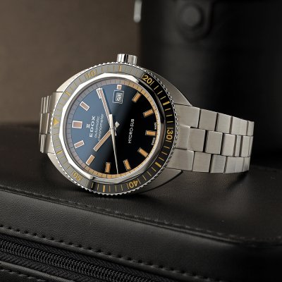 Edox Hydro-Sub to specjalna, limitowana do zaledwie 500 sztuk edycja. Jest on wodoodporny do 30 ATM i napędzany automatycznym mechanizmem Edox Calibre 806, który bazuje na modelu Sellita SW200 i posiada certyfikat COSC. Jego klasyczny design podkreśla subtelna ceramiczna wstawka bezela oraz wyraźne świecące wskazówki i indeksy.