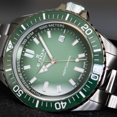 Edox od dawna nosi przydomek "mistrza wody". To właśnie w tym duchu powstała seria Skydiver Neptunian. Jest to najlepszy klasyczny zegarek do nurkowania o zdumiewającej wodoodporności 1000 m! Jest to wygodny, nowoczesny zegarek ze szwajcarskim automatycznym mechanizmem Edox Cal. 80 (opartym na Sellita SW200), szafirowym szkiełkiem z powłoką AR i dostępnym z gumowym paskiem lub stalową bransoletą w kilku kolorach. Z tyłu koperty wytłoczony jest rzymski bóg morza Neptunus, co dodatkowo podkreśla niezwykły rodowód nurkowy Skydiver Neptunian.