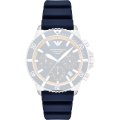 Pasek do zegarka Emporio Armani jest wykonany z materiału silikonowo i jest zamocowany do zegarka za pomocą… kołki sprężyste. Ten pasek ma szerokość 22 mm i zamyka się za pomocą sprzączka. Ten pasek ma proste mocowanie, co oznacza, że pasuje do.