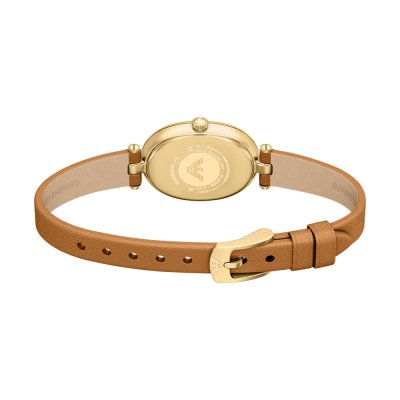 Zegarek marki Emporio Armani ma stal chirurgiczna kopertę 28 mm średnicy i jest wyposażony w pasek z materiału skóra. Wewnątrz koperty jest mechanizm Seiko i zegarek ma także szkiełko Mineralny.