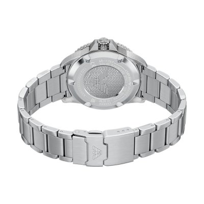 Zegarek marki Emporio Armani ma stal chirurgiczna kopertę 42 mm średnicy i jest wyposażony w pasek z materiału stal chirurgiczna. Wewnątrz koperty jest mechanizm Miyota i zegarek ma także szkiełko Mineralny.