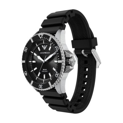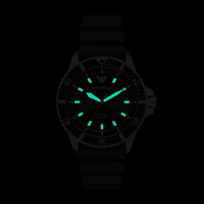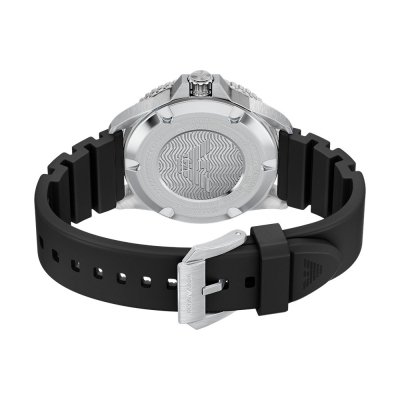 Zegarek marki Emporio Armani ma stal chirurgiczna kopertę 42 mm średnicy i jest wyposażony w pasek z materiału guma. Wewnątrz koperty jest mechanizm Miyota i zegarek ma także szkiełko Mineralny.