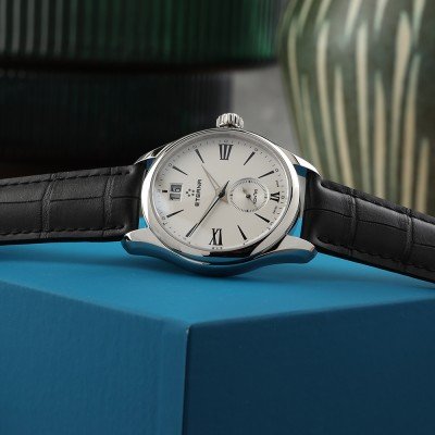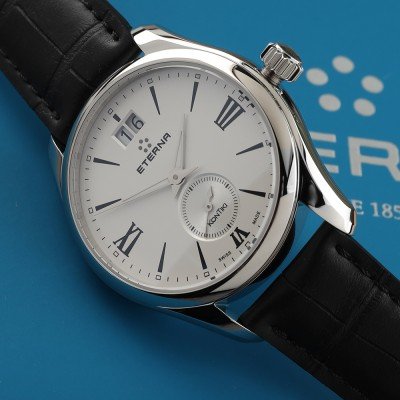 Zegarek marki Eterna ma stal chirurgiczna kopertę 36 mm średnicy i jest wyposażony w pasek z materiału skóra. Wewnątrz koperty jest mechanizm Ronda i zegarek ma także szkiełko Sapphire.