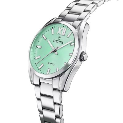 Zegarek marki Festina ma stal chirurgiczna kopertę 36 mm średnicy i jest wyposażony w pasek z materiału stal chirurgiczna. Wewnątrz koperty jest mechanizm Miyota i zegarek ma także szkiełko Mineralny.